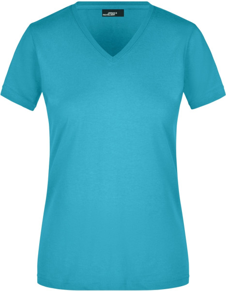 Dámske tričko James & Nicholson Ladies Slim Fit V-T, Priliehavé tričko s krátkym rukávom s výstrihom do V, Vonkajší materiál: 100% česaná bavlna, Priliehavý strih s bočnými švami, 160 g / m2, Balenie: 10/100 (ks v jednom sáčku / celkom ks kartónu) ​