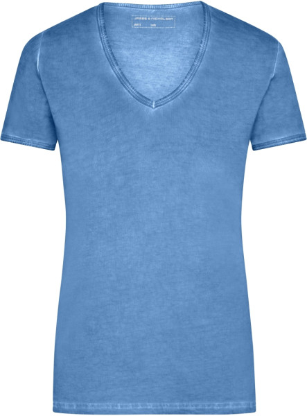 Dámske tričko, Módne tričko s výstrihom do V, Tričko je pôvodne biele a až po ušití je nastriekané sprejom na požadovanú farebnosť, Efekt farbenia je veľmi zaujímavý, Balenie: 1/50 (ks v jednom sáčku / celkom ks v kartóne) ​