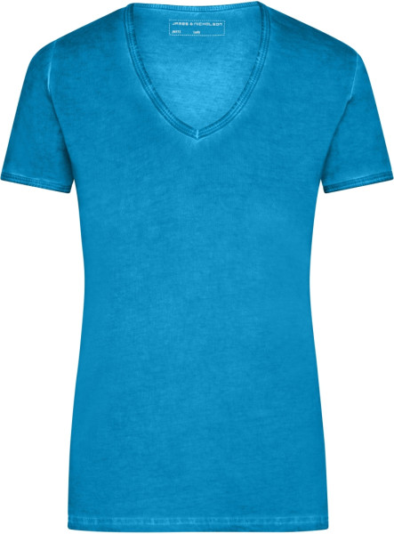 Dámske tričko, Módne tričko s výstrihom do V, Tričko je pôvodne biele a až po ušití je nastriekané sprejom na požadovanú farebnosť, Efekt farbenia je veľmi zaujímavý, Balenie: 1/50 (ks v jednom sáčku / celkom ks v kartóne) ​