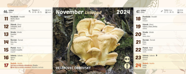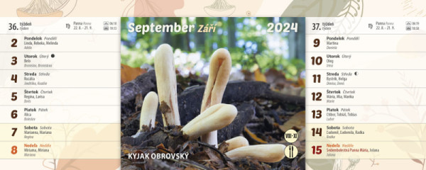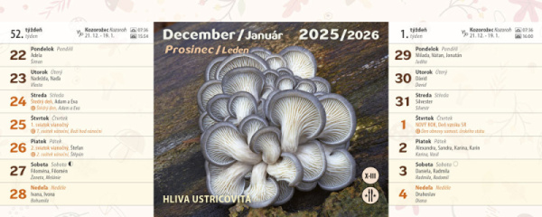 piktogramom – jedlá, nejedlá, jedovatá huba a časom ich výskytu. Nájdete v ňom informácie o východe, západe Slnka, znamenia zverokruhu, slovenské a české mená a štátne sviatky oboch krajín. A nezabudnite, pri zbere húb sa poraďte so skúseným hubárom. Nezbierajte huby, ktoré nepoznáte.