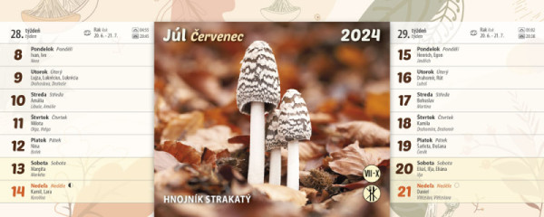 Úžasný hubársky dvojtýždňový stolový kalendár vám predstaví krásne hubárske úlovky zo slovenských lesov a lúk aj s názvom huby,