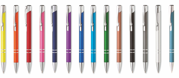 Kovové guľôčkové pero ALBA je veľmi obľúbené na reklamné účely. Matné farebné telo z hliníka je doplnené doplnené o chrómované časti. Modrá náplň veľkoobjemová. Kolekcia EVERGREEN.