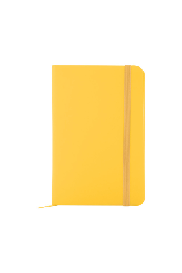 Blok potiahnutý recyklovanou PU kožou so 100 linkovanými listami z recyklovaného papiera. So záložkou v zodpovedajúcej farbe a gumičkou. Veľkosť A6.