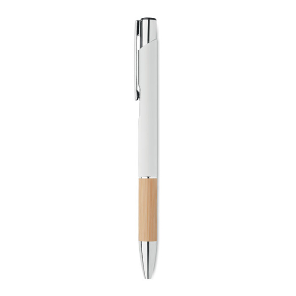 Pero z hliníka s bambusovým úchopom. Modrý atrament.