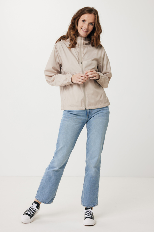 Unisex ľahká bunda vo voľnom strihu vyrobená zo 100 % recyklovaného polyesteru z použitých PET fliaš, 70 g/m². Má nastaviteľnú kapucňu s elastickou šnúrkou, reverzný zips vpredu a vrecká v bočných švoch. Všetky zipsy majú farebne zladené ťaháčiky pre elegantný vzhľad. Manžety sú plne elastické. Zadná časť bundy je mierne predĺžená a zaoblená, spodný lem má elastickú šnúrku so stoppermi pre lepšiu ochranu. Impregnácia bez fluóru/PFAS. Použitie skutočne recyklovaných materiálov je zaručené vďaka AWARE™ traceru a blockchain technológii. Po naskenovaní QR kódu získaš prístup k digitálnemu pasu produktu. 2 % z výťažku z každého predaného produktu budú venované organizácii Water.org. Produkt má certifikát OEKO-TEX® STANDARD 100.
