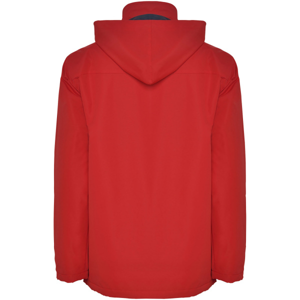 Nepremokavá bunda s polstrovaním. Centrálne tvarovaný zips so zodpovedajúcou chlopňou. Vysoký výstrih so skladacou kapucňou. Bočné vrecká