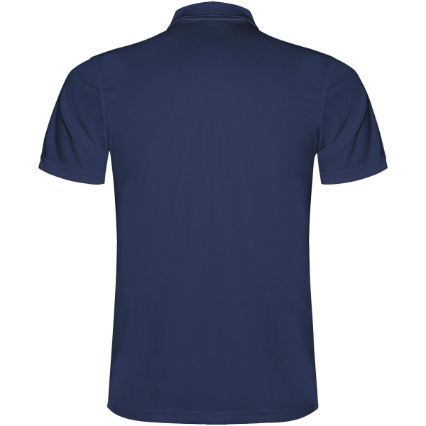 Technické polo tričko s krátkym rukávom. Úpletový golier s légou na 3 gombíky. Priedušná, ľahko umývateľná a suchá tkanina. Odnímateľná etiketa. Technická tkanina. Priedušná tkanina. Model meria 184 cm a má na sebe veľkosť L.