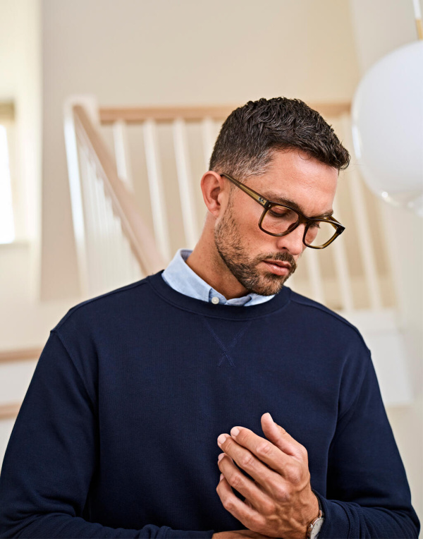 ·365 g/m² ·80% bavlna, prstencová, 20% polyester (rebrovaný Interlock) ·okrúhly výstrih ·spevňujúca páska vzadu na krku so vzorom rybej kostry ·ozdobné V-prešívanie pod predným golierom ·elastan v každom rebrovaní pre lepšiu stabilitu ·dvojité prešívanie na manžetách a leme