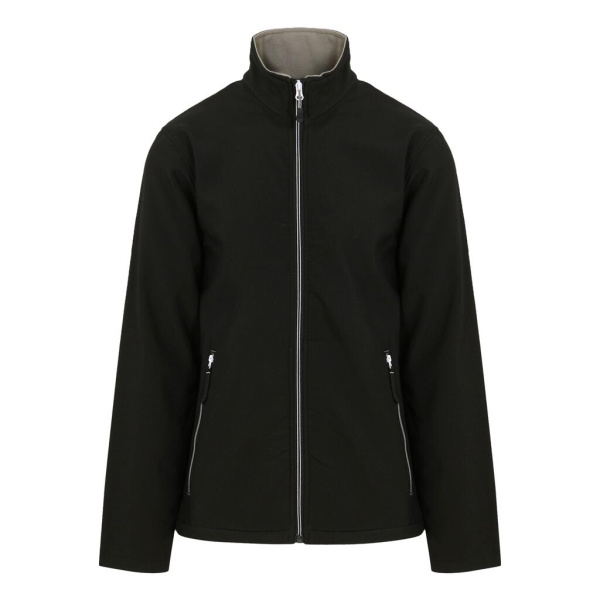 ·100% polyester (recyklovaný) ·softshellová textília s mechanickým rozťahovaním ·potlačiteľná vonkajšia softshellová textília odpudzujúca vietor a vodu ·teplá fleecová podšívka ·lemované rukávy ·zapínanie na zips ·bočné vrecká so zipsom