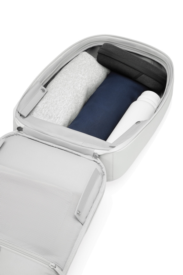 Nedobytný batoh Bobby Edge sa vyznačuje vylepšenými bezpečnostnými prvkami, samo uzamykacím kovovým zipsom, ľahkou váhou a odolnou konštrukciou. Vďaka vode odpudzujúcej vonkajšej časti a vodeodolným zipsom je vhodný aj pre outdoorové aktivity. Chytro organizovaná vnútorná časť, skryté vrecká s RFID ochranou, skryté vrecko na vloženie sledujúceho prívesku. Bobby Edge kombinuje moderný design, pokročilé bezpečnostné prvky a ponúka štýlové a bezstarostné cestovanie. Vyrobené z recyklovaného polyesteru vrátane skenovateľnej zložky AWARE™ garantujúcej obsah recyklátu. Obsah recyklovanej zložky: 14 %. Registrovaný dizajn®