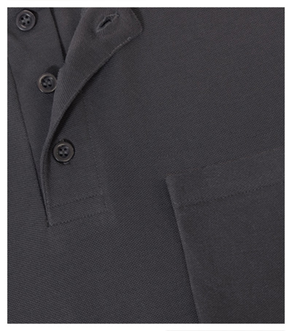 Predzrazená bavlna odolná vyšším teplotám, prateľné na 95°C (biele) a 60°C (farebné), zľahka vypasovaný strih s rozparkami v bočnom šve, golierik a lemy rukávov z rebrového úpletu 1:1, úzka léga s 4 gombíčkami vo farbe materiálu, vnútorný priekrčník začistený páskou z povrchového materiálu, spevnenie ramenných švov páskou, samostatné vrecko pre jednoduchší branding, Produkt je dostupný v dvoch variantách: s/bez labelu v bočnom šve (viď prehľad farieb). Varianta s brandom labelu len do vypredania zásob.. Pique, 100 % predzrazená bavlna.