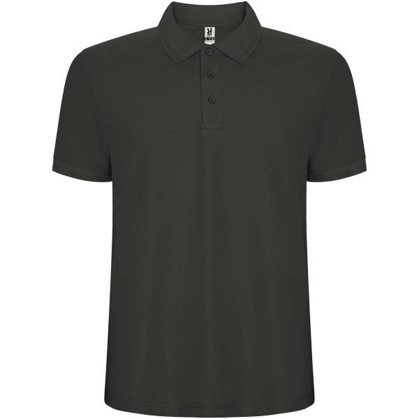 Polokošeľa s krátkym rukávom. Lemovanie goliera a rukávov z rebrovanej látky 1 × 1 s detailmi. Zapínanie na 3 gombíky. Zosilnené kryté švy