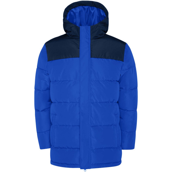 Polstrovaná bunda s kapucňou. Predný zips krytý légou. Chránič brady. Dve bočné vrecká na zips. Elastické manžety.
