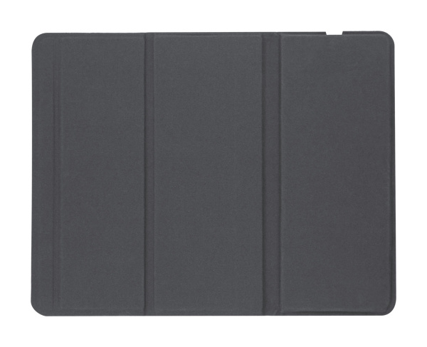 Skladacia podložka pod myš z recyklovanej PU kože so vstavanou bezdrôtovou nabíjačkou (10W) a funkciou držiaka mobilného telefónu. So zamatovou protišmykovou základňou. Vrátane USB nabíjacieho kábla.