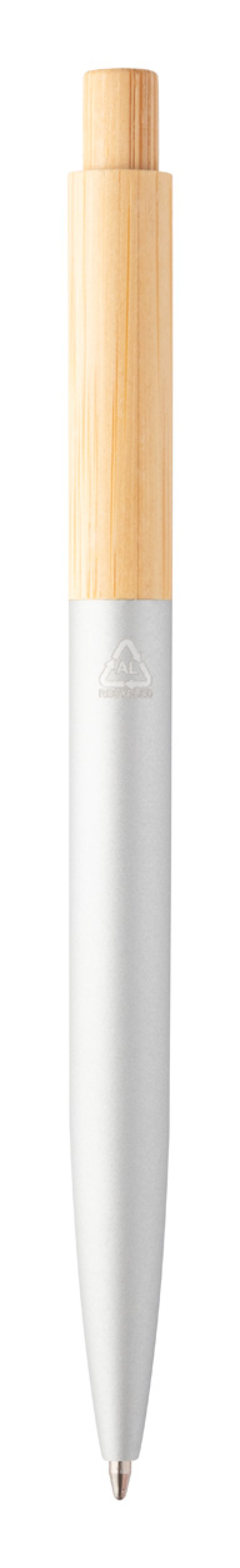 Guľôčkové pero z bambusu a recyklovaného hliníka s pogumovaným povrchom a kovovým klipom. S modrou náplňou.