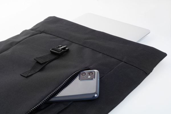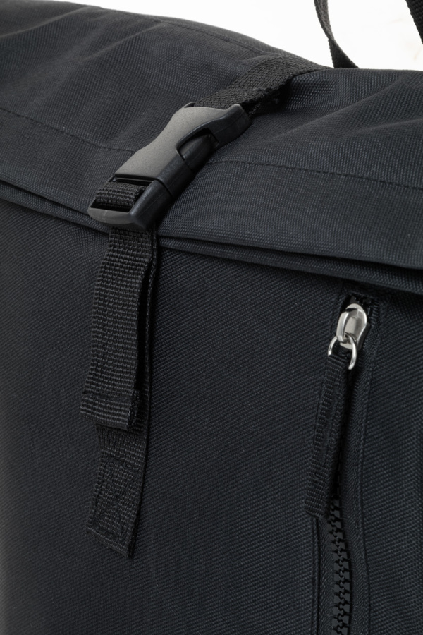 Rolovací batoh RPET so zapínaním na pracku, priehradkou na notebook (14") a predným vreckom na zips. S polstrovaným chrbtom a ramennými popruhmi. Polyester 600D RPET s výrazným štítkom RPET.