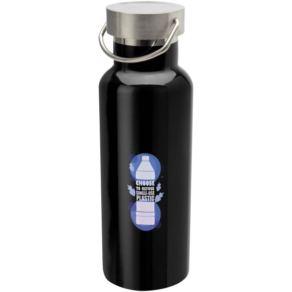 Odolná nerezová fľaša na vodu s dvojitou vákuovou izoláciou s certifikáciou RCS, s nerezovým skrutkovacím viečkom a odolným pútkom z nerezovej ocele. Objemová kapacita: 500 ml. Nepretekajúca. Dodávané v darčekovej krabičke.