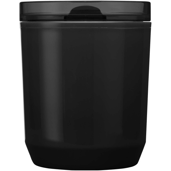 Hrnček s jednoduchým dizajnom, ktorý pasuje do väčšiny kávovarov a držiakov nápojov v aute. Má konštrukciu s dvojitou stenou s vonkajším povrchom z recyklovaného PP plastu a vnútrom z PP plastu. Posuvné viečko je vyrobené z AS a PP plastu. Objemová kapacita: 180 ml.