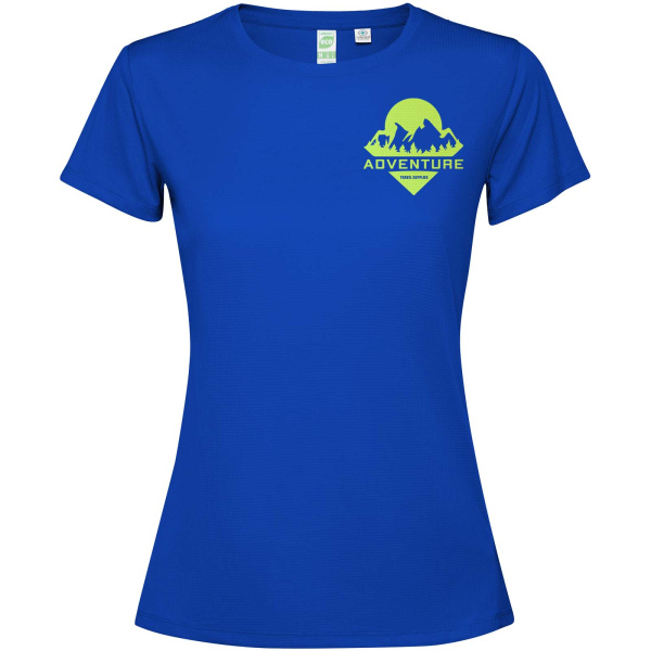 Dámske vypasované tričko s krátkym rukávom. Golier s ladiacimi švami. Zadný lem je o niečo dlhší ako predný. Bočné švy posunuté dopredu.