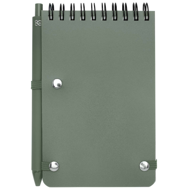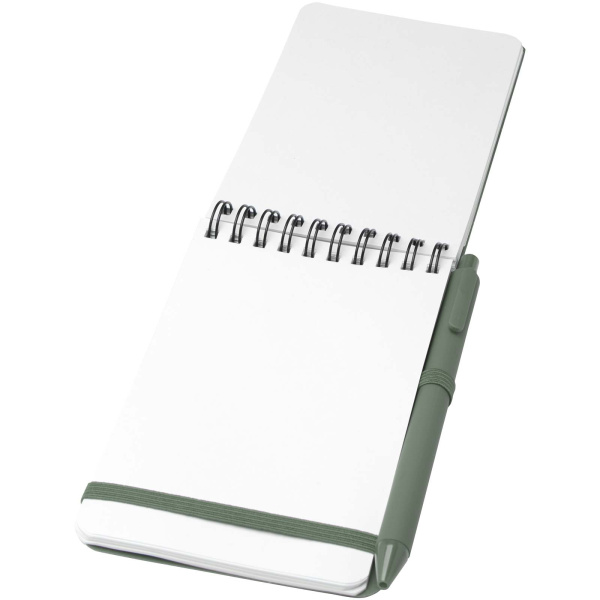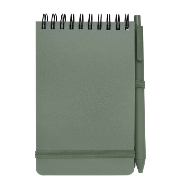 Zápisník s pevnou obálkou formátu A6 z plastu recyklovaného z oceánu Thalaasa s guľôčkovým perom, farba - žíhaná zelená 10790262 Žíhaná zelená - 2533 ks 0 ks 1,58 € ks