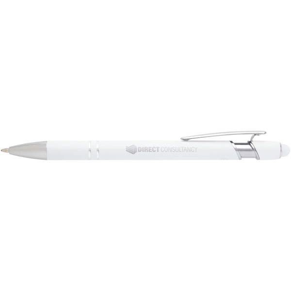 Guľôčkové pero Kish so striebornou povrchovou úpravou má telo vyrobené z recyklovaného hliníka a dotykový stylus vyrobený zo silikónu. Znižuje tiež množstvo odpadu na skládkach a pomáha šetriť prírodné zdroje s cieľom znížiť emisie skleníkových plynov. Farba atramentu: Čierna. Dĺžka písania: 800 metrov. Rozmer hrotu: 1,0 mm.