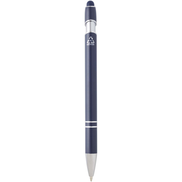 Guľôčkové pero Kish so striebornou povrchovou úpravou má telo vyrobené z recyklovaného hliníka a dotykový stylus vyrobený zo silikónu. Znižuje tiež množstvo odpadu na skládkach a pomáha šetriť prírodné zdroje s cieľom znížiť emisie skleníkových plynov. Farba atramentu: Čierna. Dĺžka písania: 800 metrov. Rozmer hrotu: 1,0 mm.