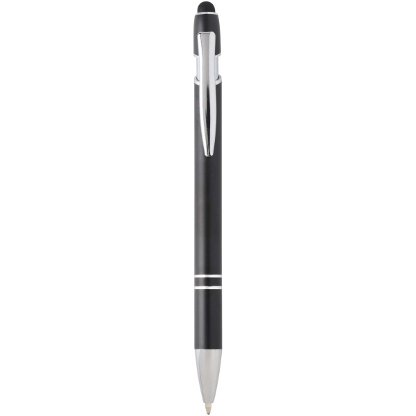 Guľôčkové pero Kish so striebornou povrchovou úpravou má telo vyrobené z recyklovaného hliníka a dotykový stylus vyrobený zo silikónu. Znižuje tiež množstvo odpadu na skládkach a pomáha šetriť prírodné zdroje s cieľom znížiť emisie skleníkových plynov. Farba atramentu: Čierna. Dĺžka písania: 800 metrov. Rozmer hrotu: 1,0 mm.