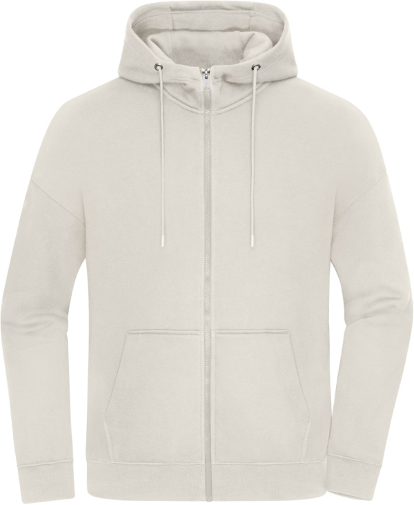 Ležérna oversize mikina s kapucňou a zipsom, Česaná biobavlna + recyklovaný polyester, Dvojvrstvová kapucňa so sťahovaním na šnúrku, Zips po celej dĺžke, 2 predné vrecká, Náplety pri páse a rukávoch sú s elastanom