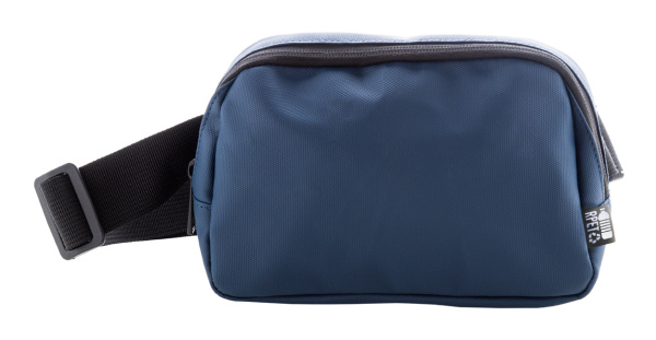 Vodotesná RPET ľadvinka s 2 priehradkami na zips, sieťovanými vnútornými vreckami s organizérom a nastaviteľným popruhom. Polyester 600D RPET potiahnutý PU, s výrazným štítkom RPET.