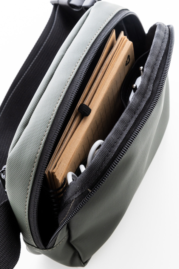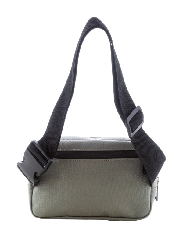 Vodotesná RPET ľadvinka s 2 priehradkami na zips, sieťovanými vnútornými vreckami s organizérom a nastaviteľným popruhom. Polyester 600D RPET potiahnutý PU, s výrazným štítkom RPET.