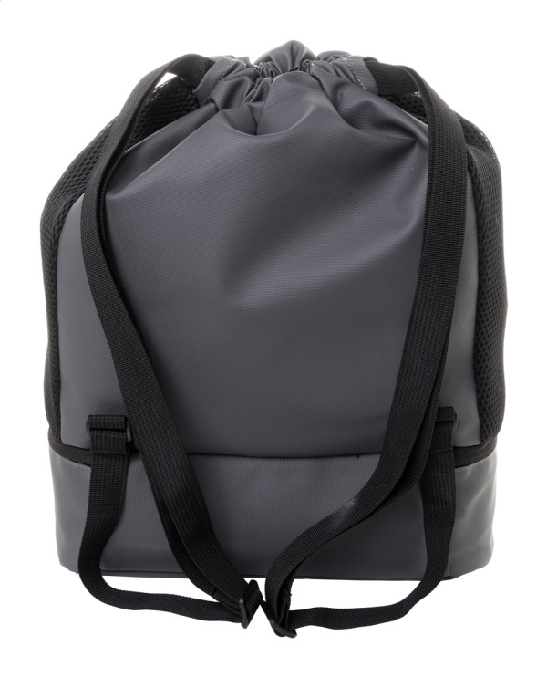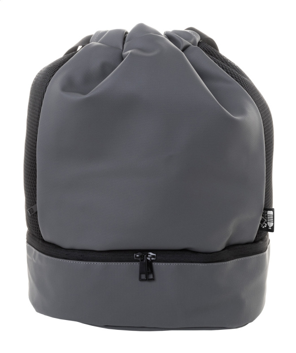 Prémiový vak so sťahovacou šnúrkou z RPET s priehradkou na topánky na zips, bočnými vložkami zo sieťoviny a širokými popruhmi. Polyester 600D RPET potiahnutý PU s výrazným štítkom RPET.