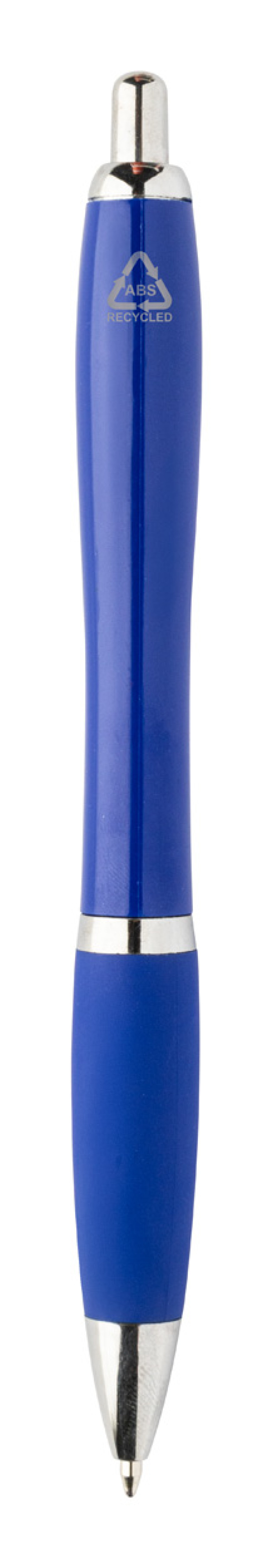 Guľôčkové pero z recyklovaného ABS plastu s úchopom v zodpovedajúcej farbe a chrómovanými časťami. S modrou náplňou.