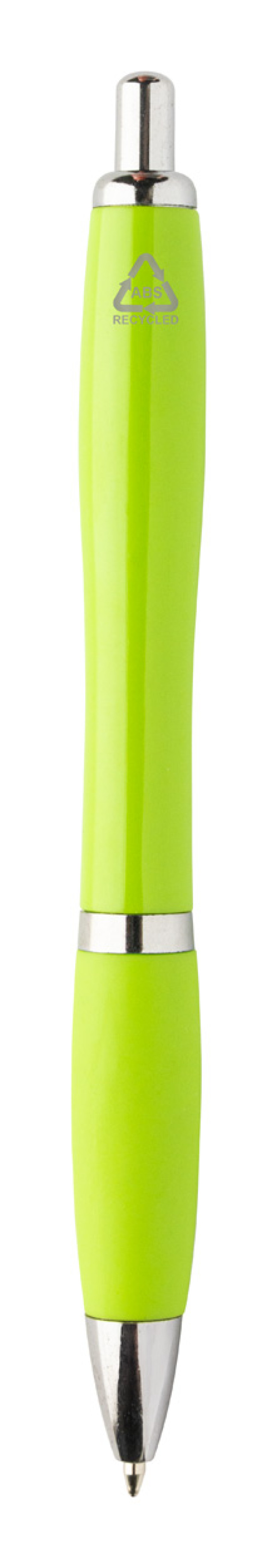 Guľôčkové pero z recyklovaného ABS plastu s úchopom v zodpovedajúcej farbe a chrómovanými časťami. S modrou náplňou.