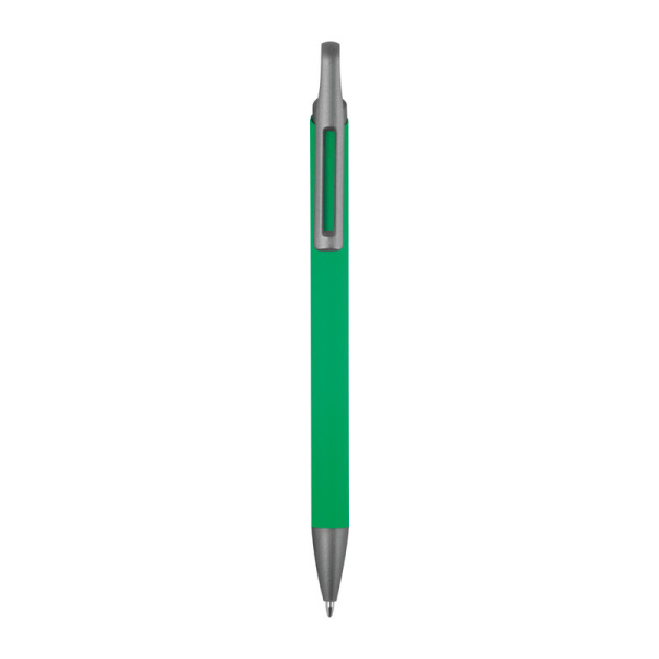 Pogumované guľôčkové pero z recyklovaného hliníka a modrou Semi-Gel náplňou. S hrúbkou hrotu 0,5 mm je písanie tenké a stále jemné.