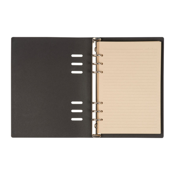A5 poznámkový blok s obalom z recyklovaného PU a 200 riadkovanými stranami z recyklovaného papiera.