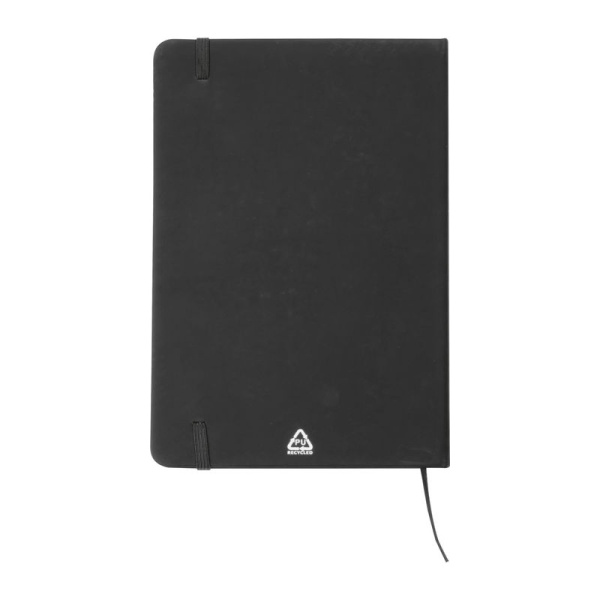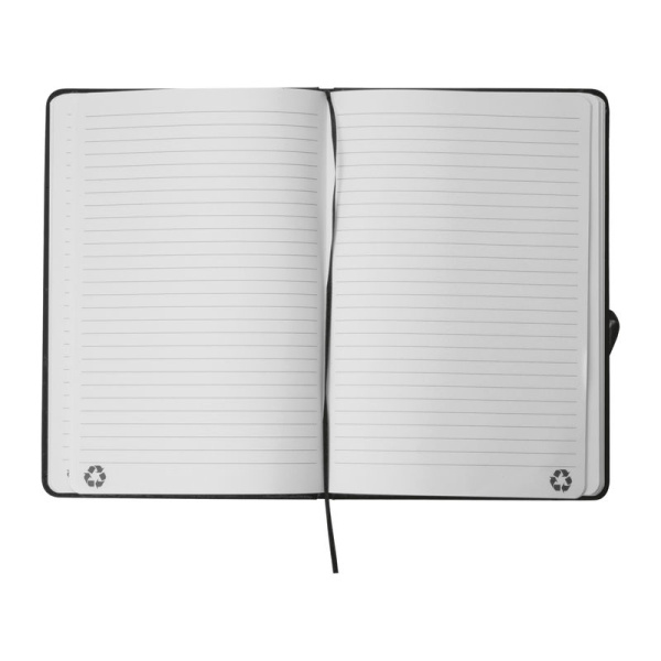 Zápisník formátu A5 s obalom z recyklovaného PU a 160 linajkovanými stranami z recyklovaného papiera.