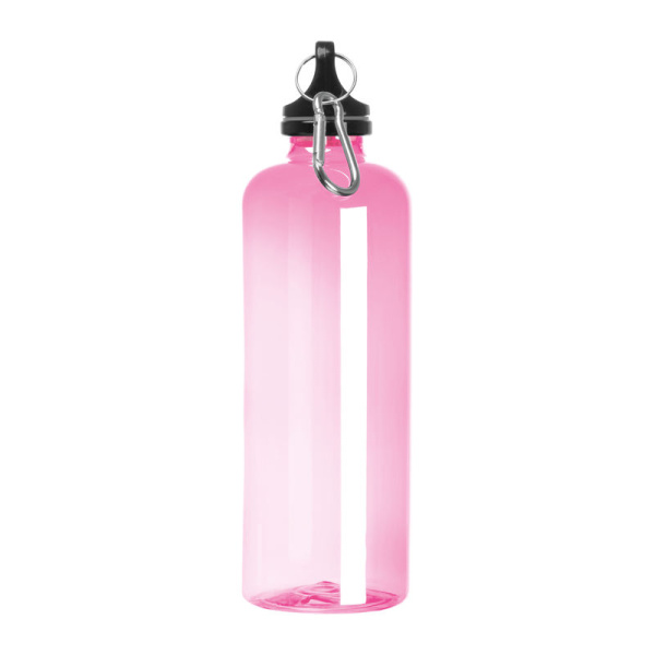 Fľaša na pitie vyrobená z plastu (PET) s nepriepustným uzáverom, hliníkovou karabínou a objemom 600 ml.