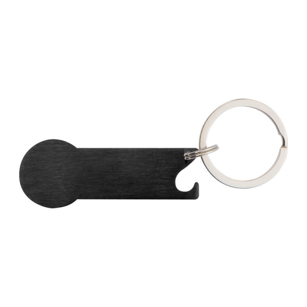 Otvárač na fľaše z recyklovaného hliníka s kovovým krúžkom na kľúče.