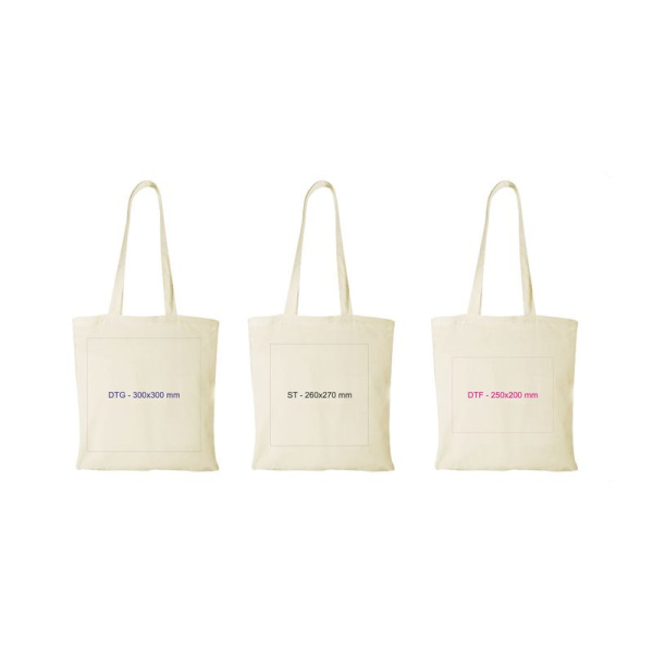 Kvalitná bavlnená nákupná taška (140 g/m²) s dlhými ušami v prírodnej farbe zo 100% bavlny.