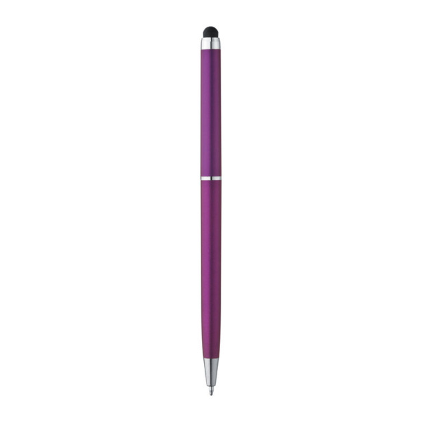Plastové guľôčkové pero v elegantnom tenkom vyhotovení s modrou tuhou a dotykovou funkciou na ovládanie všetkých dotykových displejov.
