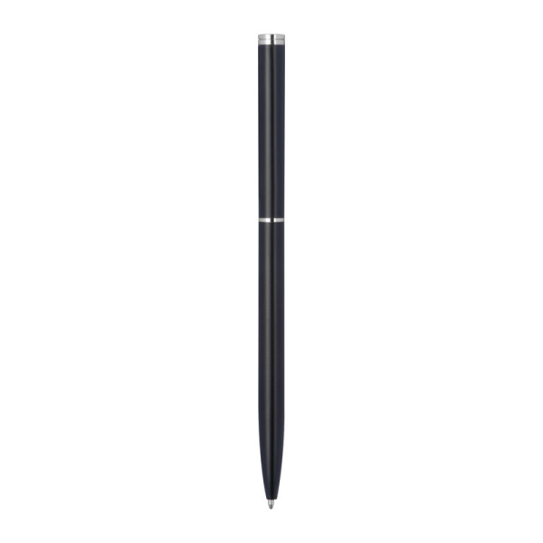 Hliníkové guľôčkové pero s 3 ozdobnými prúžkami. Pero má veľkú modrú náplň.