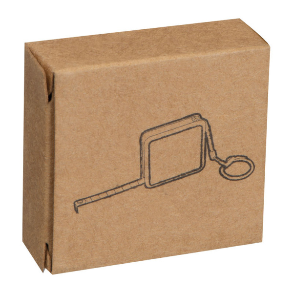 1 metrový zvinovací meter s kľúčenkou a s meracím pásmom vo viacerých farbách.