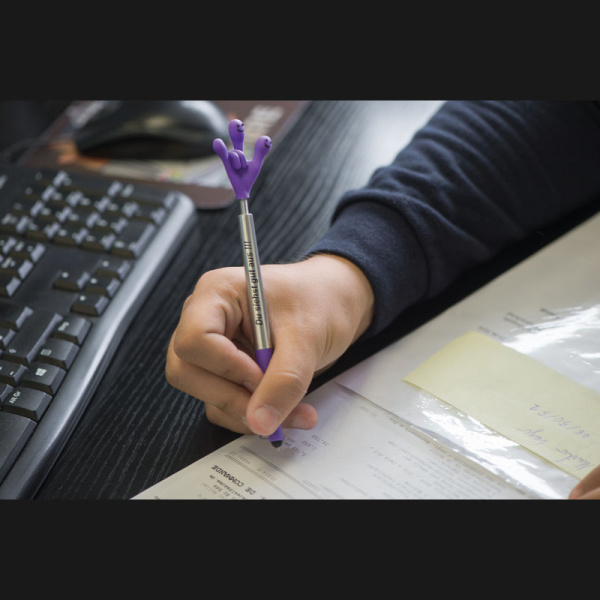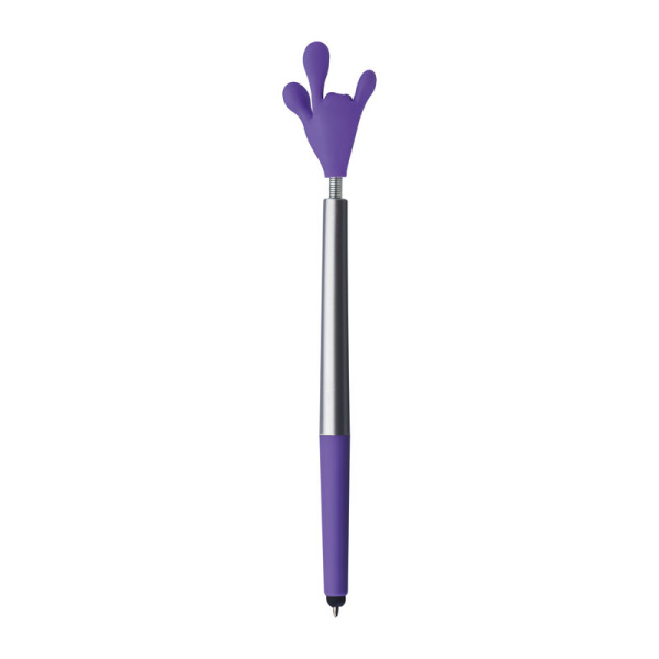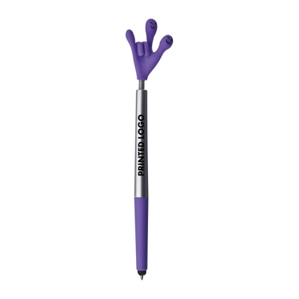 Guľôčkové pero doplnené o pružinu s Fun Hands, s modrou náplňou a dotykovou koncovkou.
