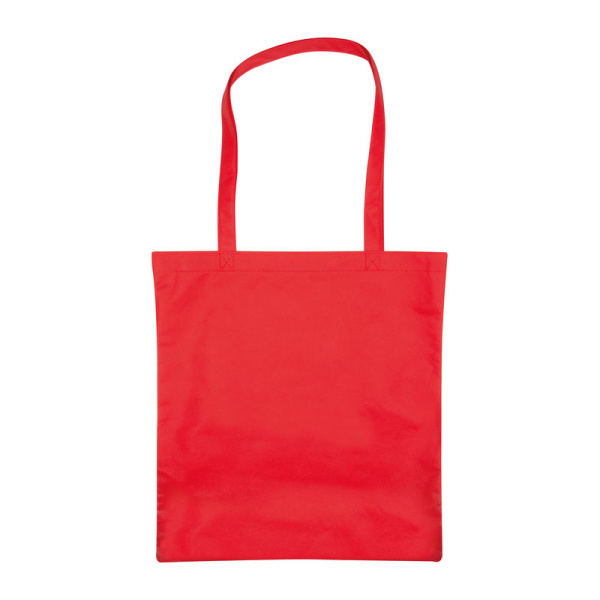 Veľká netkaná nákupná taška (80g/m²) v mnohých rôznych farbách s dlhými popruhmi, ktoré sú pripevnené k taške výrazným krížovým šitím.