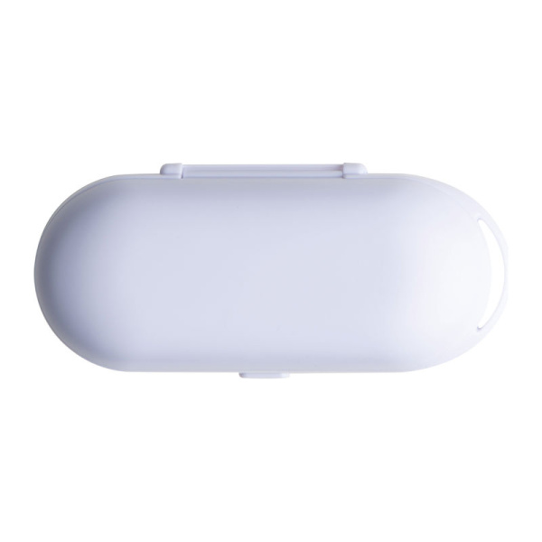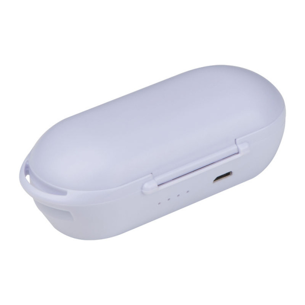 Ergonomicky tvarované Bluetooth slúchadlá s nabíjacím káblom USB a nabíjačkou, ktorá slúži aj ako puzdro. Slúchadlá 35mAh, puzdro 250mAh, doba nabíjania 1h, doba prevádzky 2-3h. Pohotovostná doba 120h, dostupná vzdialenosť 8,3m