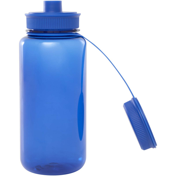 Jednostěnná sportovní láhev vyrobená z materiálu RPET, s certifikací podle normy RCS, se šroubovacím uzávěrem a nepropustným víčkem a s pohodlnou rukojetí pro přenášení, která je součástí uzávěru. Duální konstrukce otevírání pro snadné čištění a plnění. V souladu s procesem recyklace PET schváleným EFSA (Evropským úřadem pro bezpečnost potravin). Objemová kapacita: 900 ml.