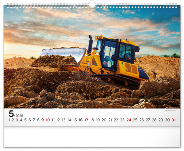 NOTIQUE Nástenný kalendár Stavebné stroje 2026, 48 x 33 cm