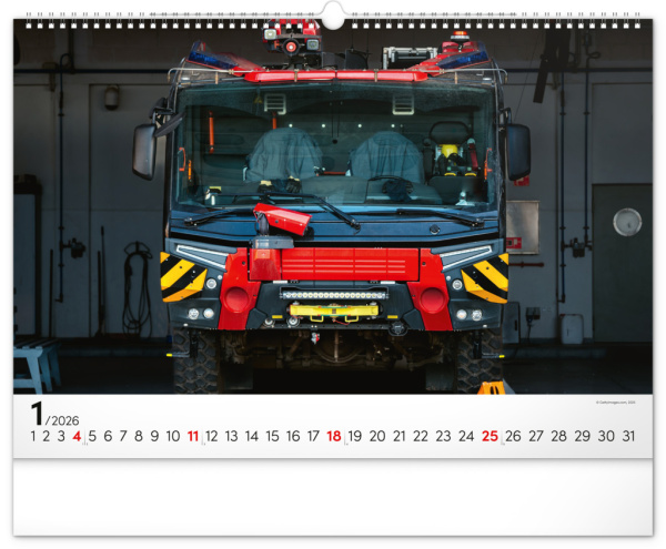 NOTIQUE Nástenný kalendár Hasičské vozidlá 2026, 48 x 33 cm