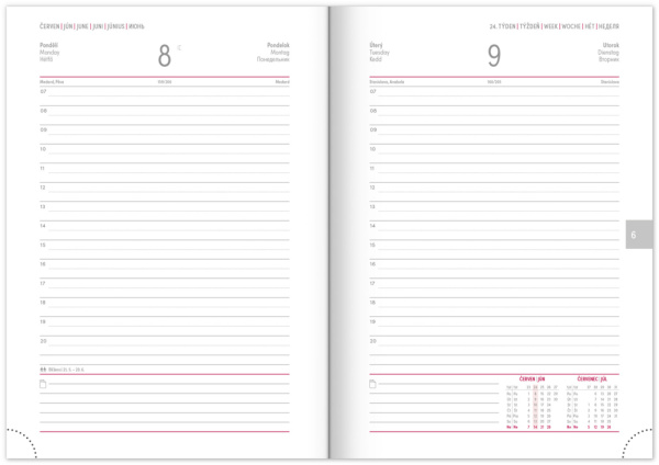 a Slovenskej republiky • miesto pre osobné údaje • textilná záložka • perforované rožky • priestor na poznámky