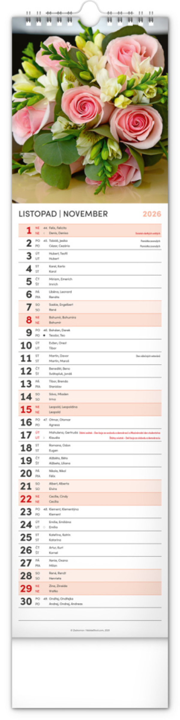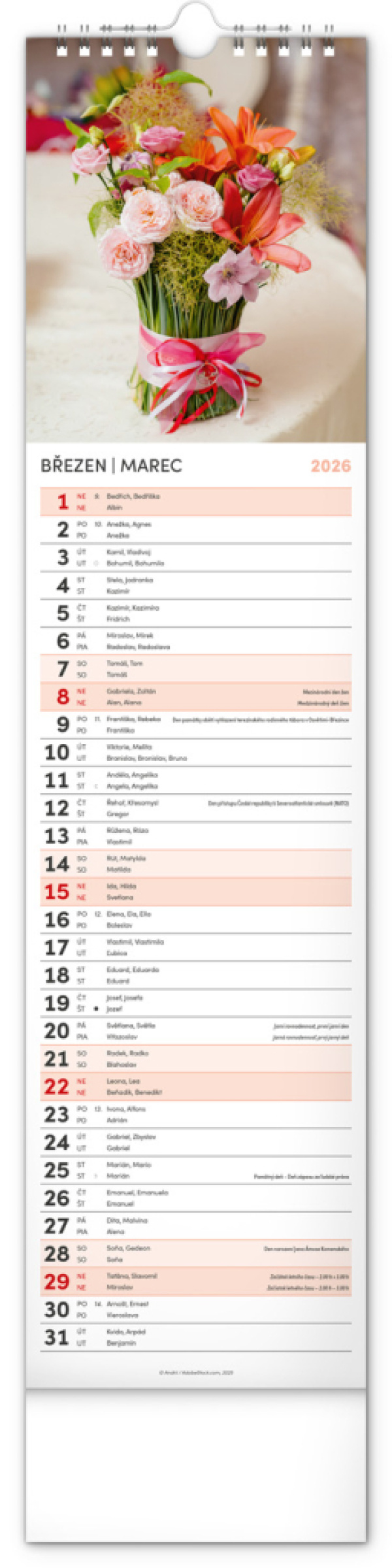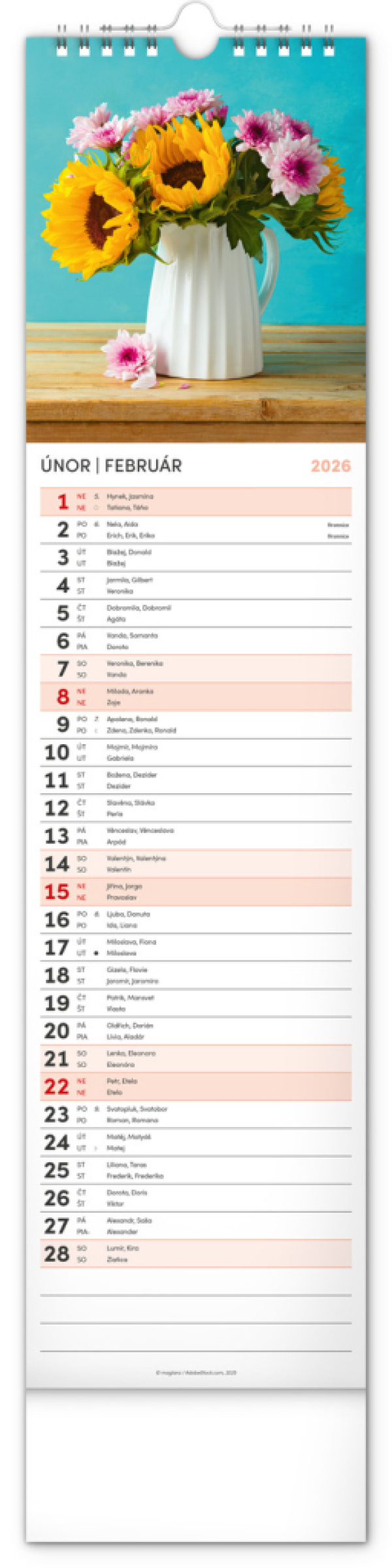 NOTIQUE Nástenný kalendár Květiny – Kvety CZ/SK 2026, 12 x 48 cm